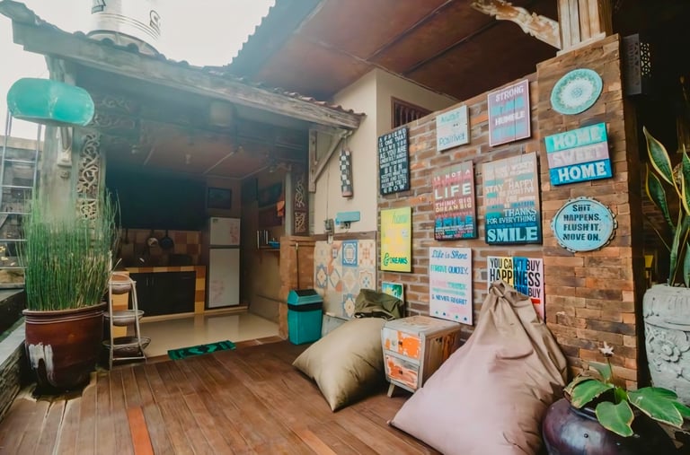 Comfortable spots to sit, unwind, and enjoy the warm Bali air.